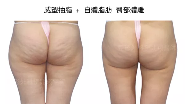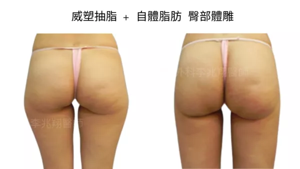 也能透過威塑抽脂VASER與自體脂肪補脂的方式,塑造出令人稱羨的歐美豐滿翹臀。